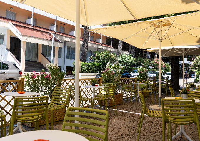 - A tavola: ristorante pizzeria all'aperto con vista sulla pineta (in caso di maltempo ti facciamo accomodare in un secondo ristorante climatizzato)